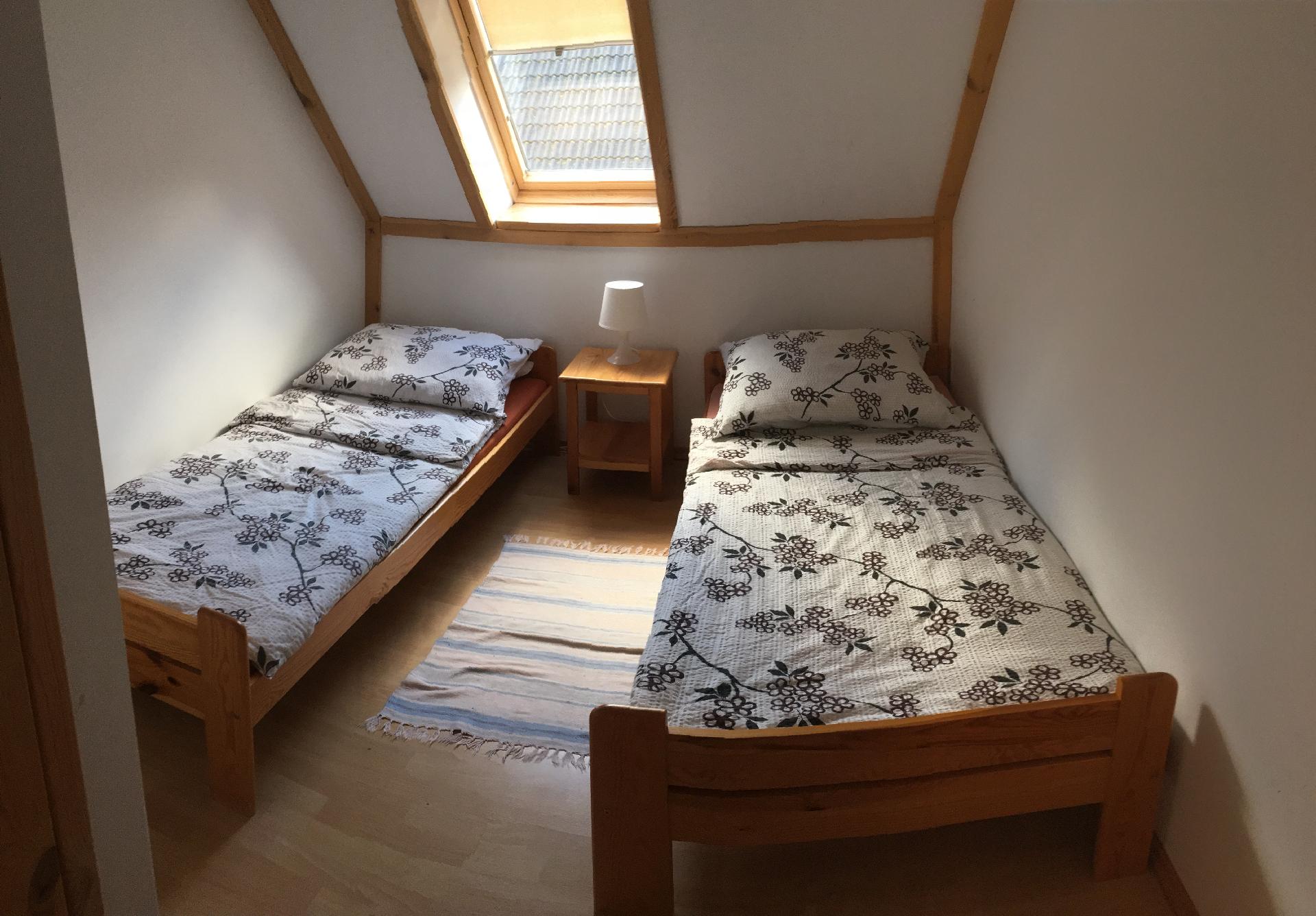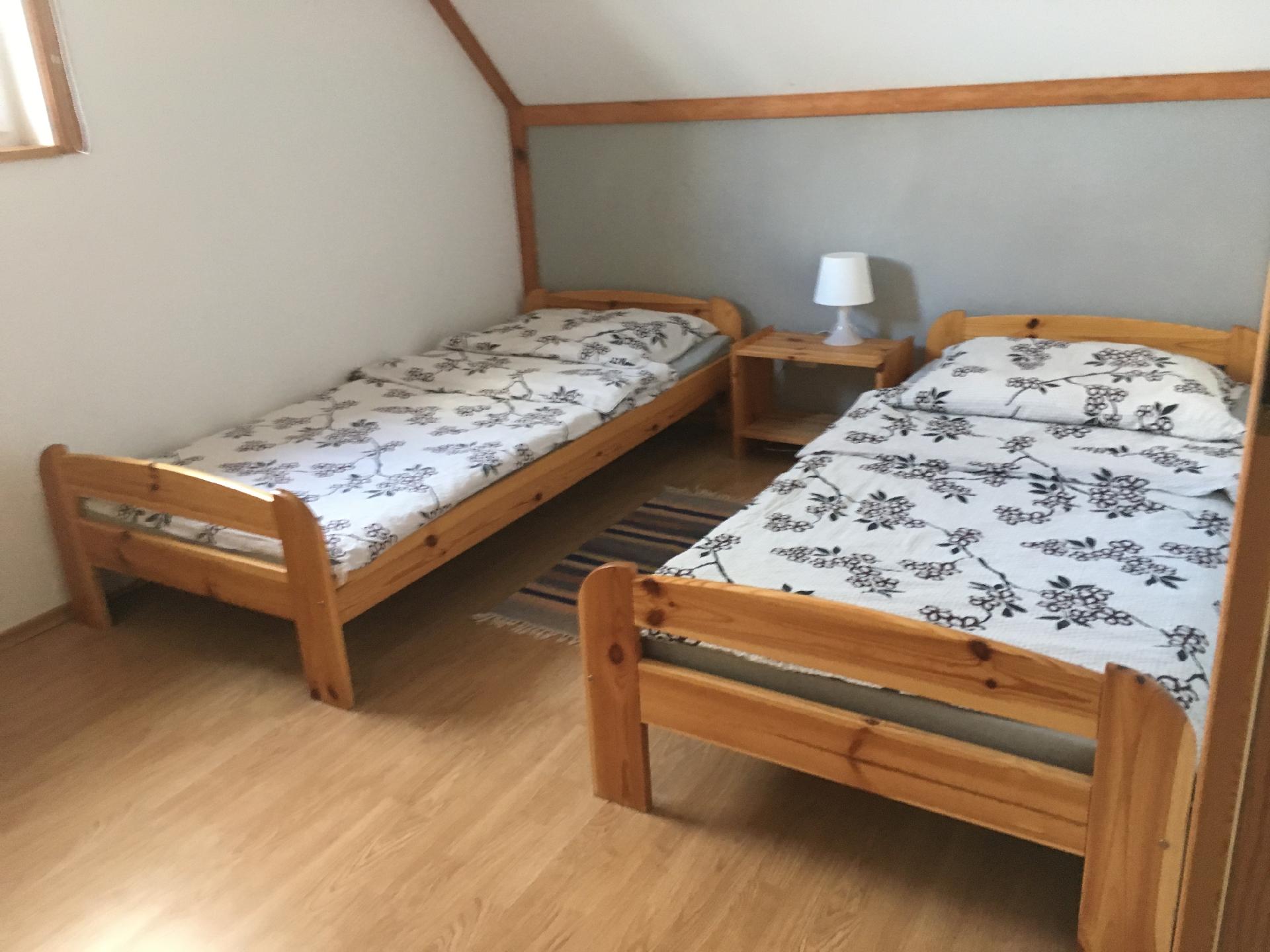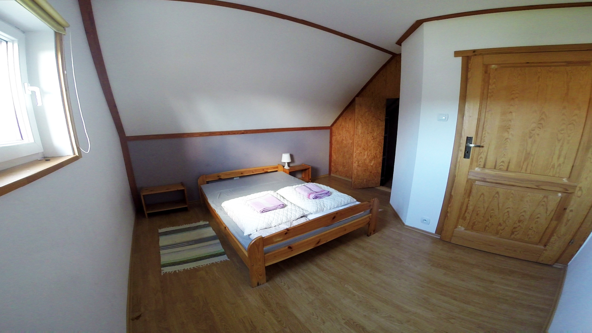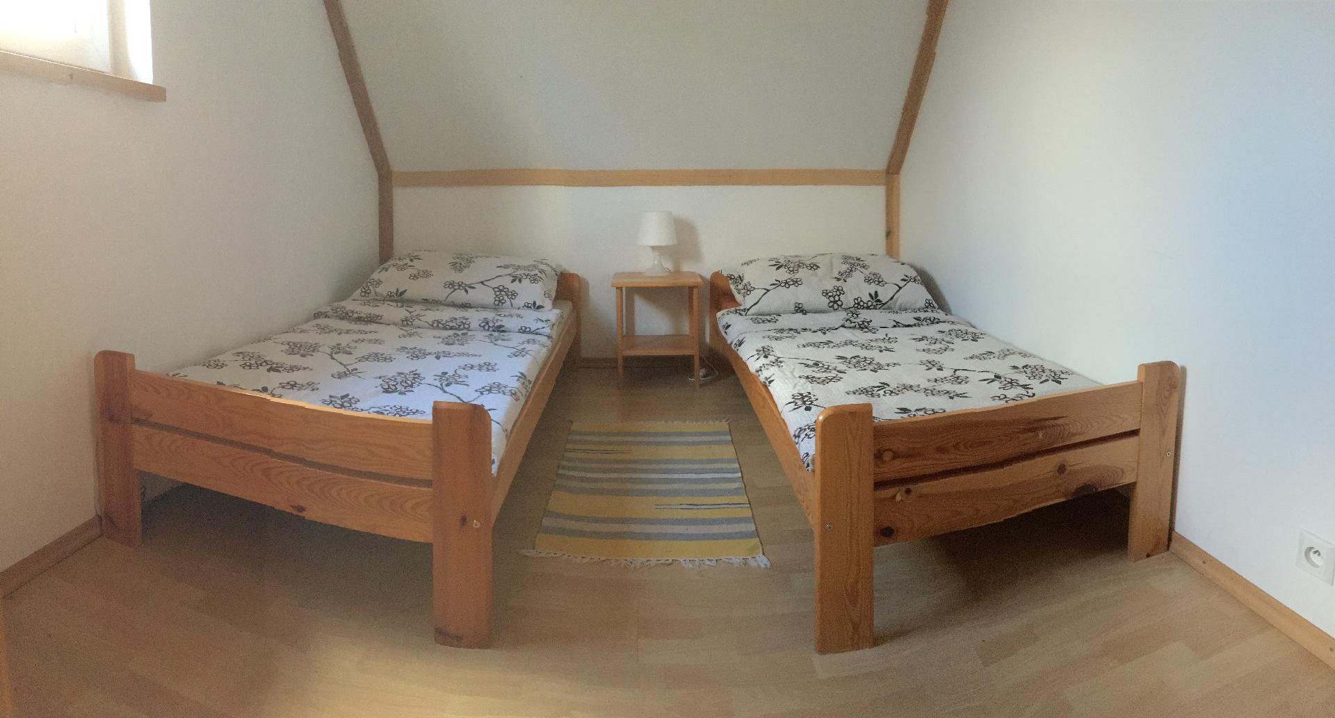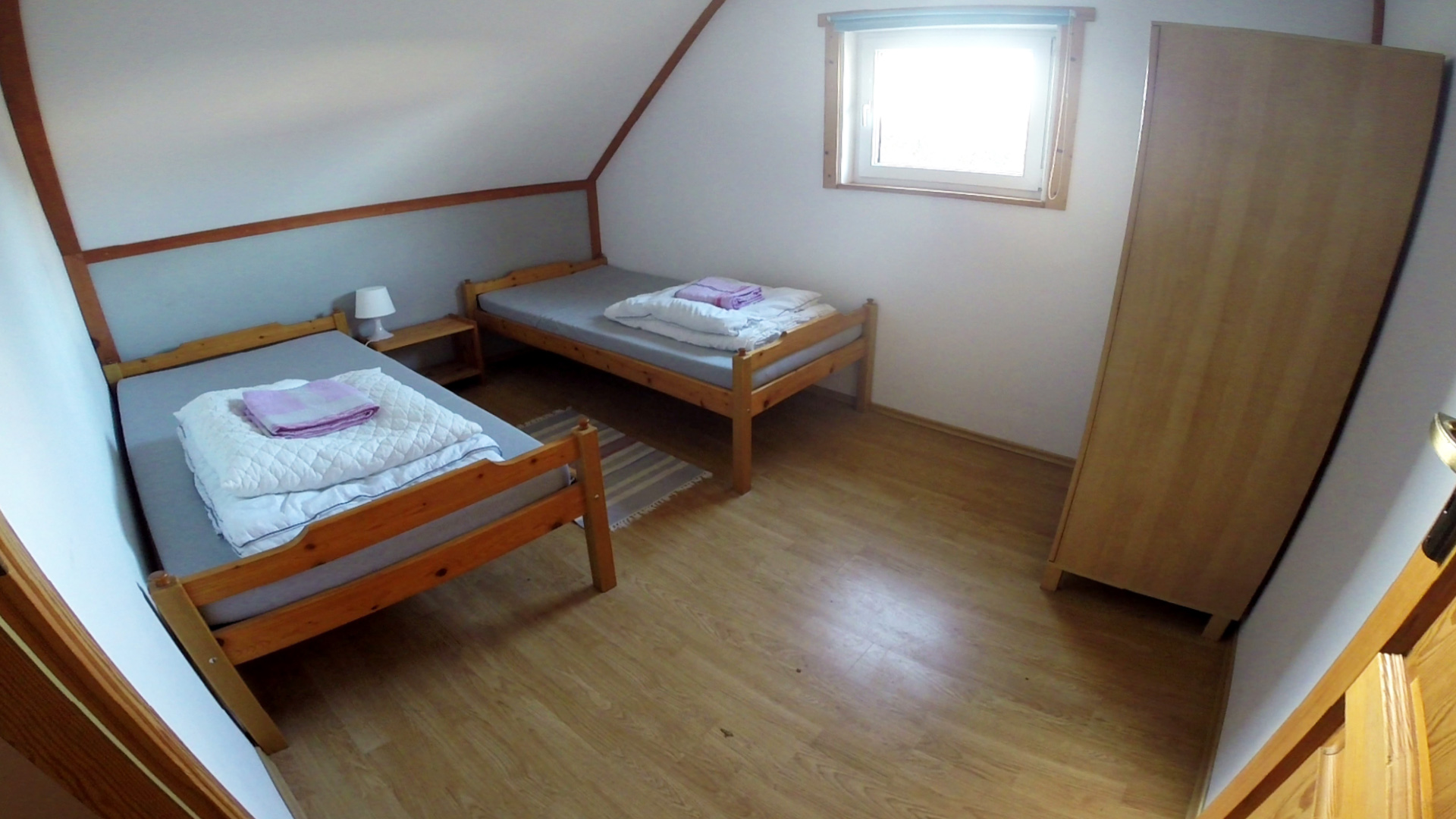- piętro – trzy sypialnie dwuosobowe (jedna sypialnia z łóżkiem podwójnym i garderobą)