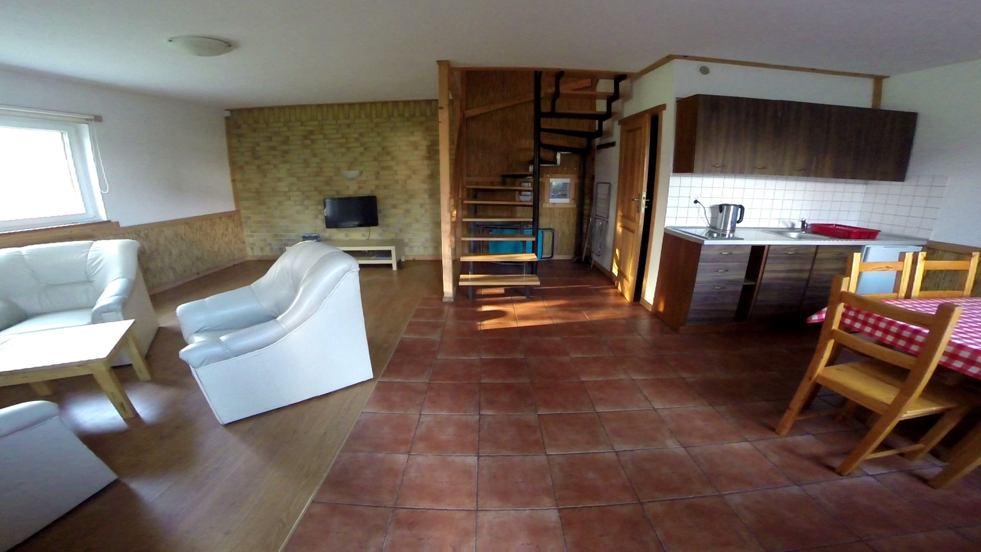 - parter – pokój dzienny, aneks kuchenny, łazienka
