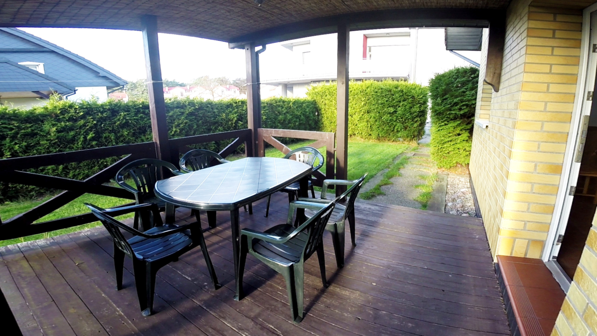 - dom leży w zamkniętym kompleksie wypoczynkowym w centrum Rowów